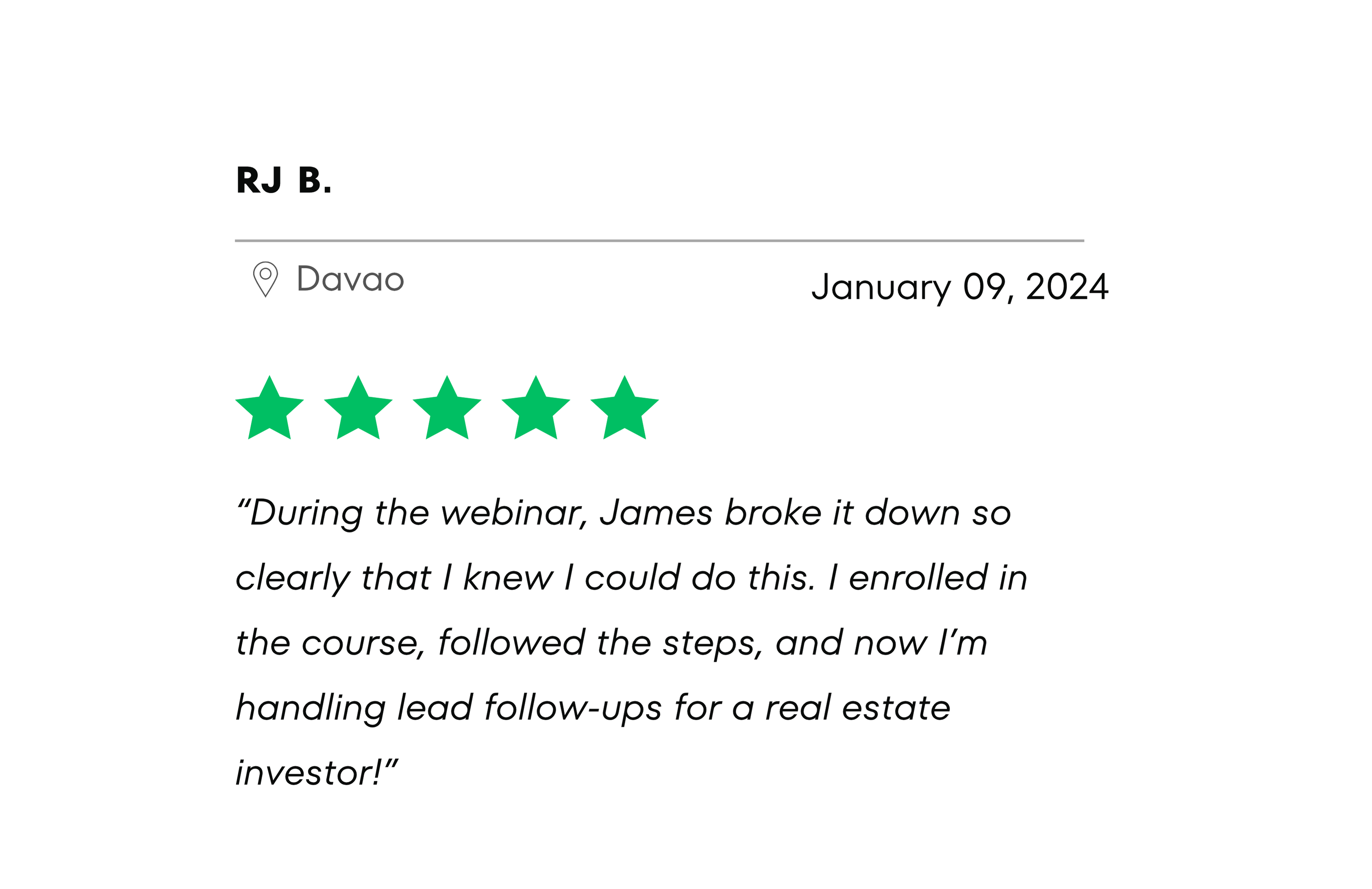 Hi, I’m James Burbank, a real estate entrepreneur and VA mentor who has helped over 390+ Filipino Virtual Assistants finally break through, land online jobs, and gain real confidence — even without a background in virtual work.